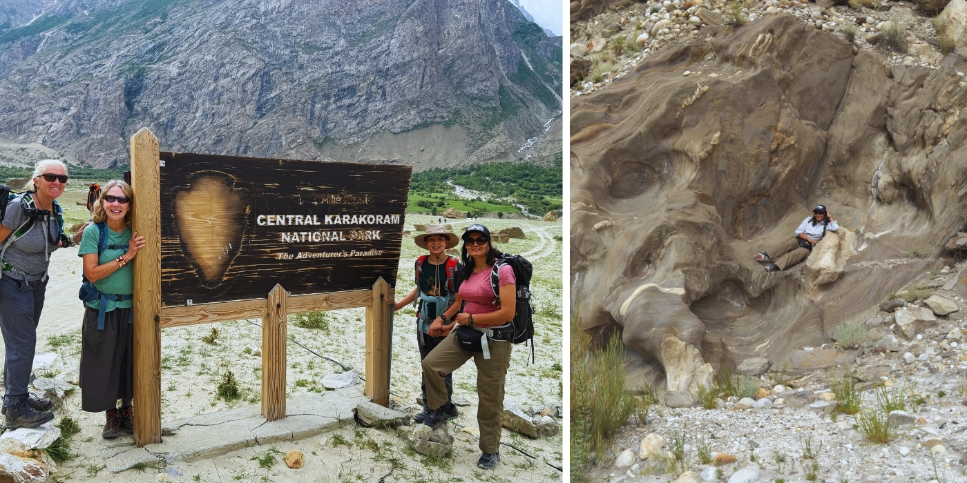 Photo: Ravi at K2 Basecamp. Dan Mazur and Sujata showing the sign of Central Karakoram National Park. Welcome