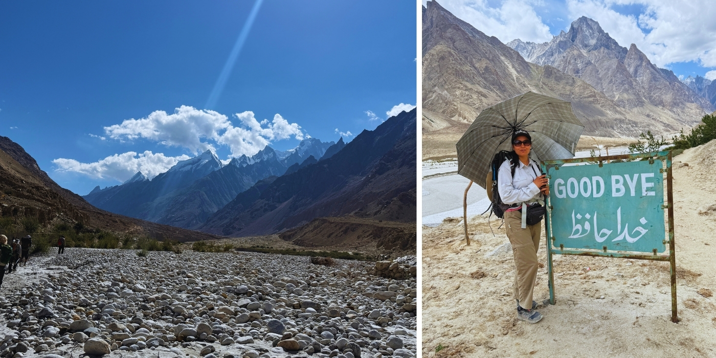 2 Aug - Today we enjoyed breakfast at Askole before beginning our walk to the national park gate, where we received a map. Lunch was served at Korophon, beside the beautiful Biafo River. We then continued our trek to Jhola Bridge, spotting many garnets along the way. Upon reaching Jhola Camp, we were pleasantly surprised to find no other groups there. We were grateful for hot showers, a delicious dinner, and comfortable tents—a peaceful and restful night followed.