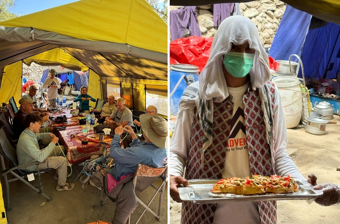 1 Aug -Today we had breakfast in Skardu. Loaded up the 4x4s and drove to Shigar. Visited an old mosque and crossed a checkpost. Stopped for lunch in Dassu. Bought some gems from local prospectors. Luanna handed out candy to local kids. Drove up a steep road to a broken bridge—couldn’t cross it by jeep. Porters carried all our gear across. Switched to new jeeps on the other side and continued to Askole. Camped for our first night. Long day, but a big dinner and now off to sleep. Good night!