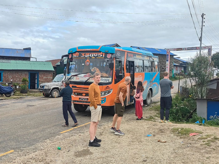 4 Oct - We stayed overnight in a lodge in Salleri town and then in the morning we drove in a Jeep to Bung. Then we walked to Khiraule and enjoyed a delicious dinner in a lodge. It has been raining. But everyone is very dry and comfortable. Good night