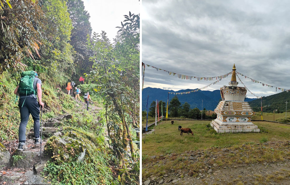 8 Oct - Today our team hiked from Khola Kharka to Kothe (3,500m / 11,483ft), following a beautiful, ever-changing mountain trail. The path wound along grassy hillsides and descended through lush forests, offering glimpses of distant snowy peaks and the serene Panch Pokhari. We arrived at Kothe — a peaceful mountain village nestled among green slopes and towering summits. All members and Sherpas are in good health.