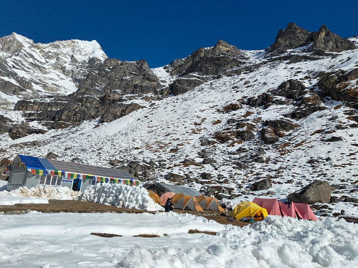 10 Oct - Today our team arrived in Khare (5,000m / 16,404ft) after Hiking from Tagnag. Khare is a beautiful high alpine village and serves as the starting point for the Mera La crossing. The weather today was clear and pleasant, and all members and Sherpas are in good health.