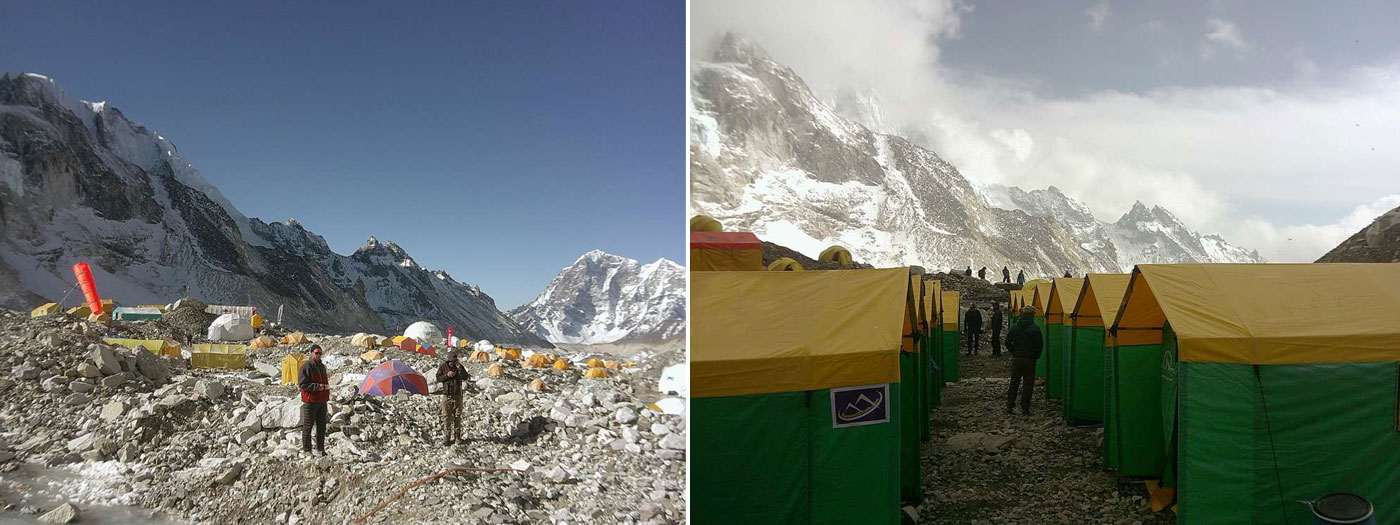 Caption : Everest base camp and our box sleeping tents at EBC.