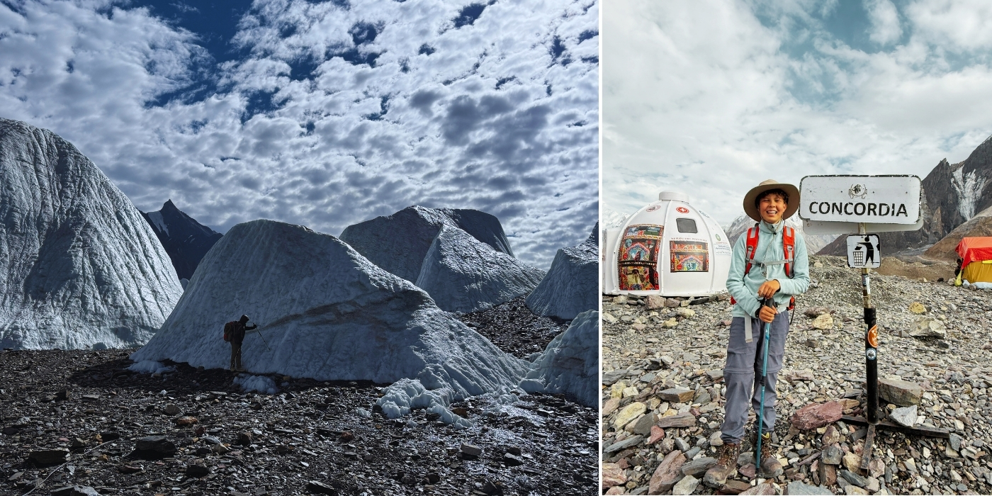 Caption : Sunrise trek on Baltoro, then on to Concordia Camp.