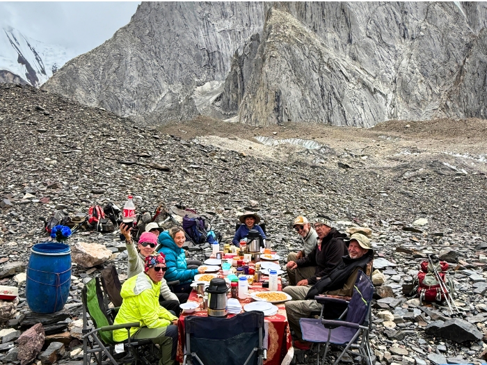 At Paiyu, we had a big lunch, enjoyed a cold Coke, took showers, and sent our clothes for laundry. The best part was relaxing with friends and enjoying the amazing views of Liligo Peak, Great Trango, and Cathedral Spires. Now it’s time to sleep. Good night from Paiyu!
