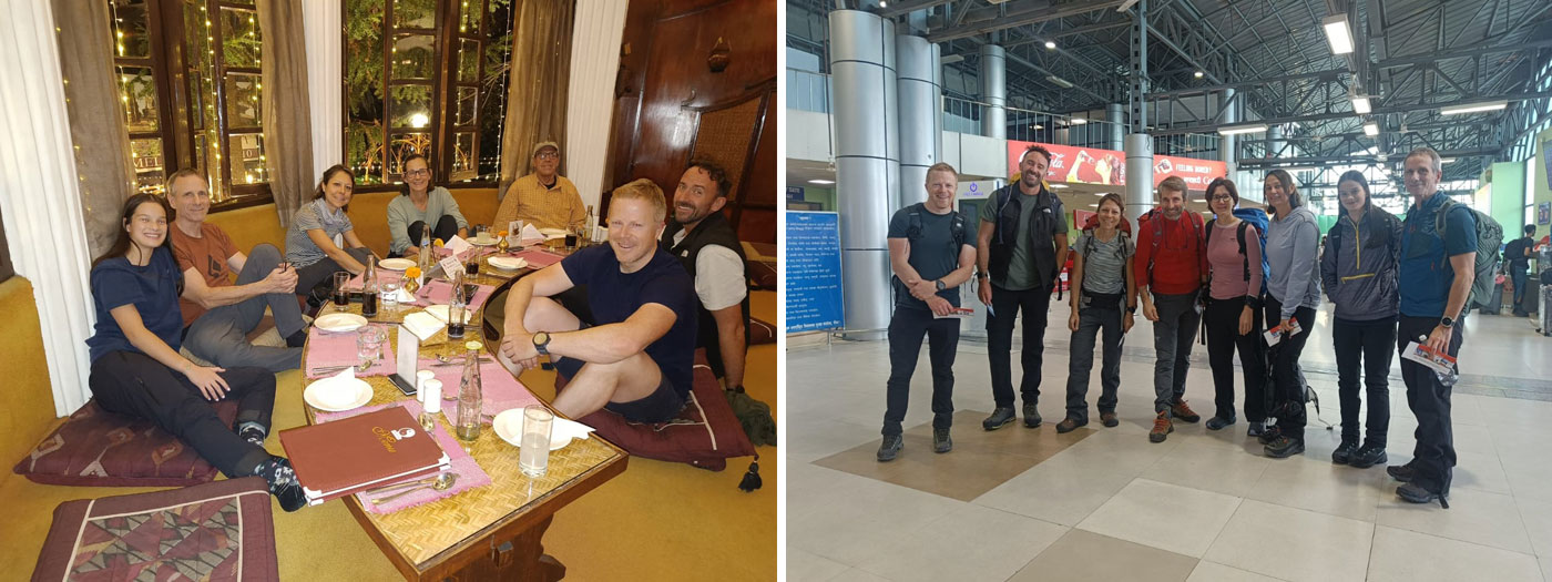 Caption : Members having dinner at Kathmandu restaurant. Lobuche + AmaDablam Ready to fly Lukla.
