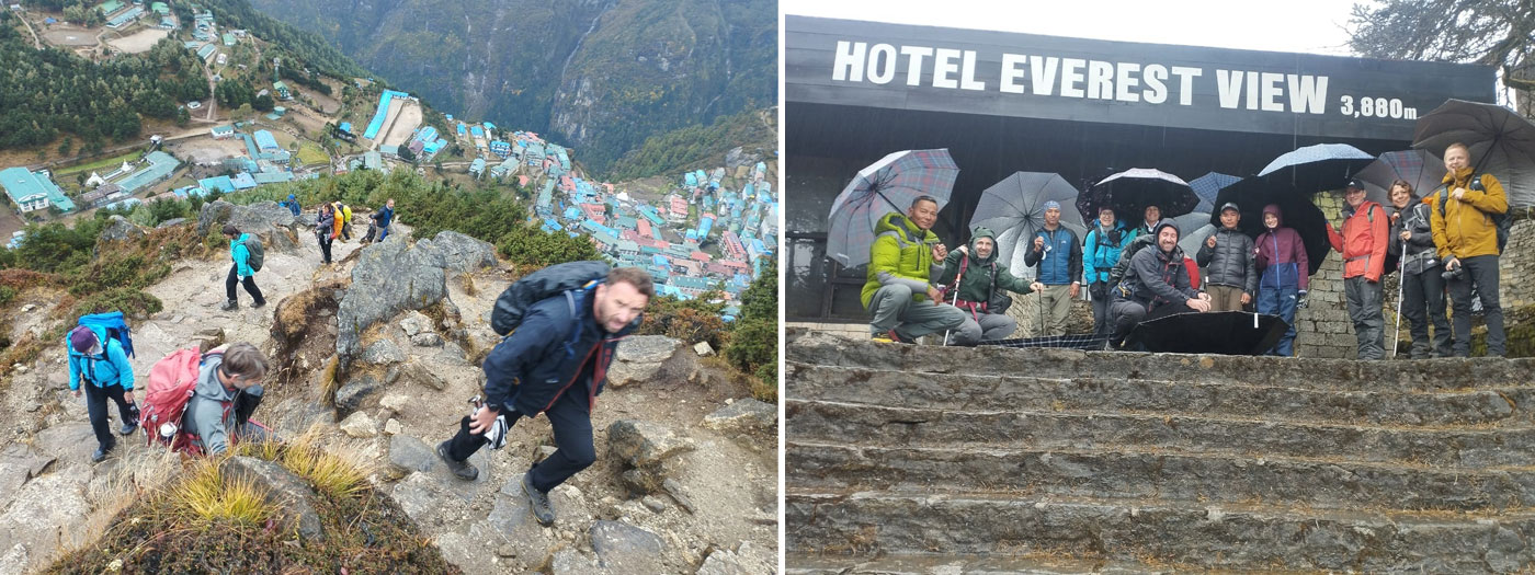 Meanwhile, our early-start trekking members have already reached Namche Bazaar after climbing the steep Namche Hill. They’re relaxing in their lodges — well done, team!