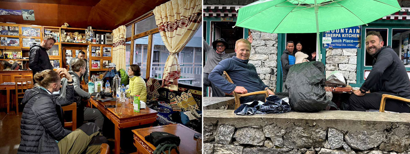 Caption : Lunch stop at Fungki Thangka, Our Members at Sonam Lodge Pangboche. Photo Wendy.