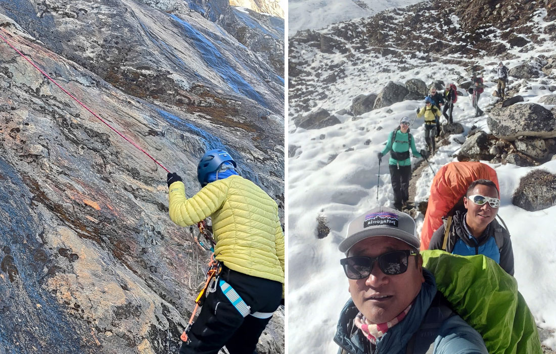 Caption : Rope and Ice Training. Team at Lobuche High Camp. Photo Dorje.