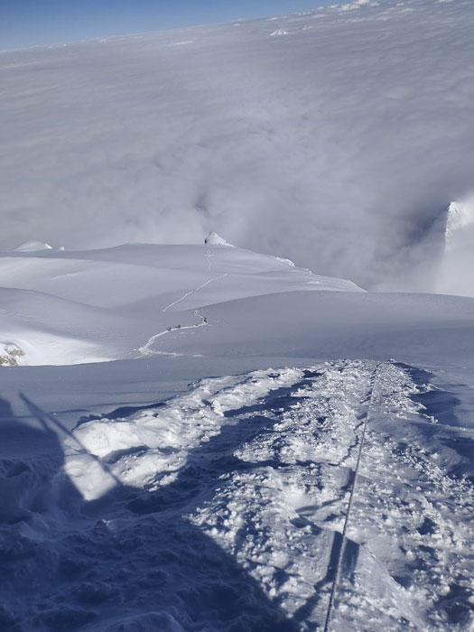 Caption : Ridgeline below Manaslu’s summit. Photo Lars.