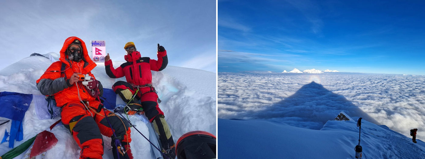 Caption : At the summit of Manaslu. Check out the shadow itself. Photo Lars.