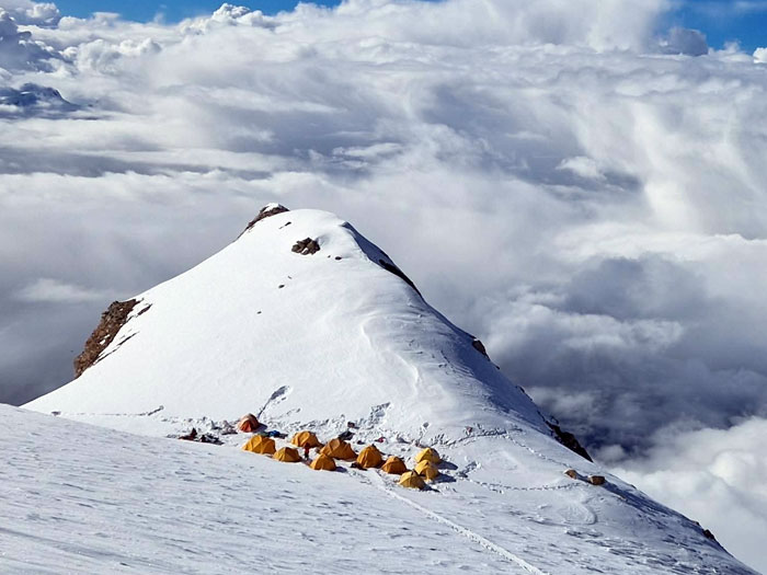 Caption : Above the clouds at Camp 3! Returned to Camp 2 to recover, and acclimatize safely.