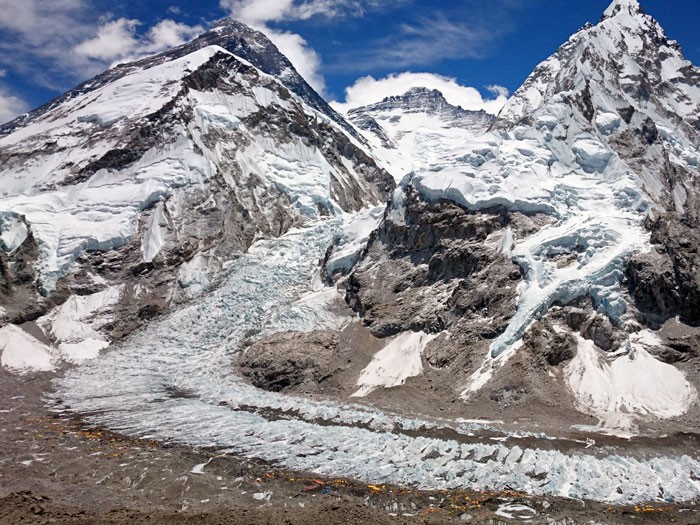 - 12) Walk up to Everest basecamp, which lies atop the Khumbu glacier at 5,300 metres/17,388 feet. Return to Gorak Shep.