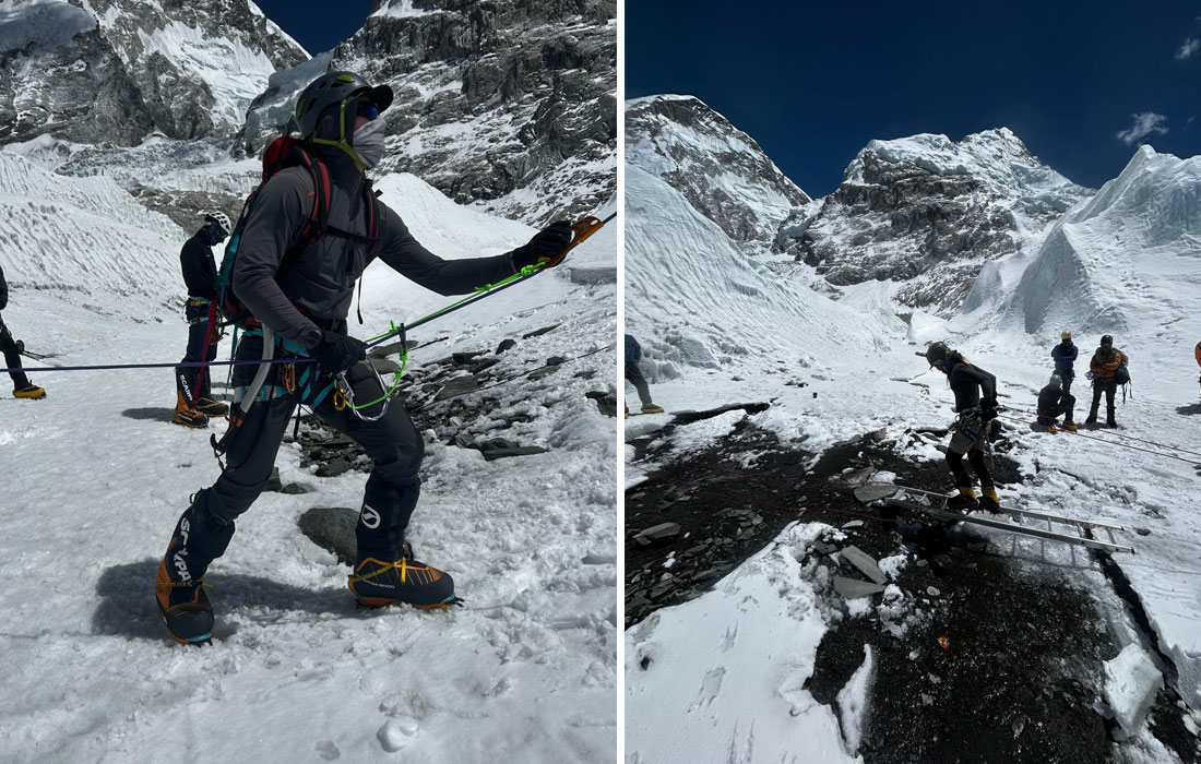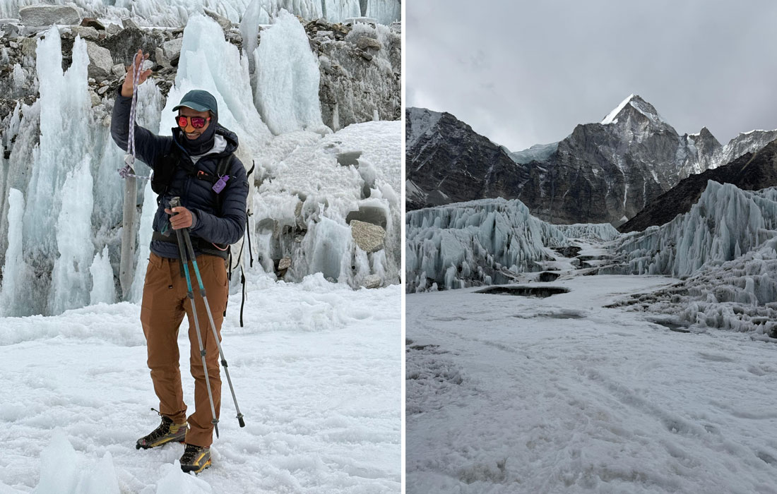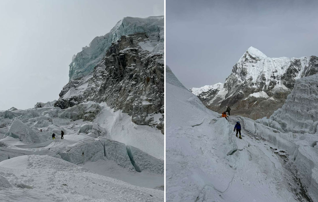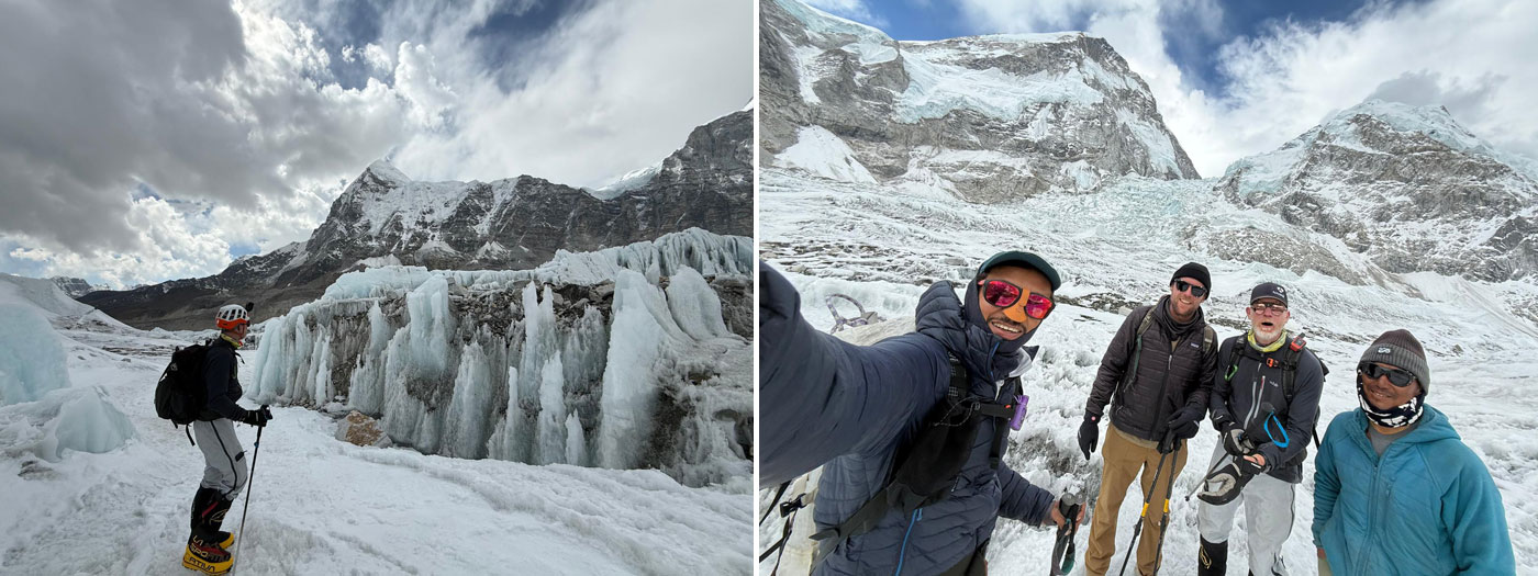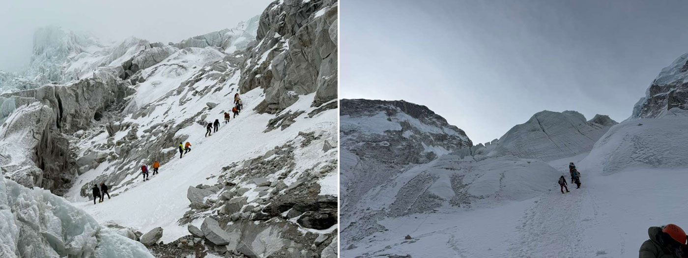 Caption : The team climb to check the serac between base camp and camp one. Photo : Vibhu.