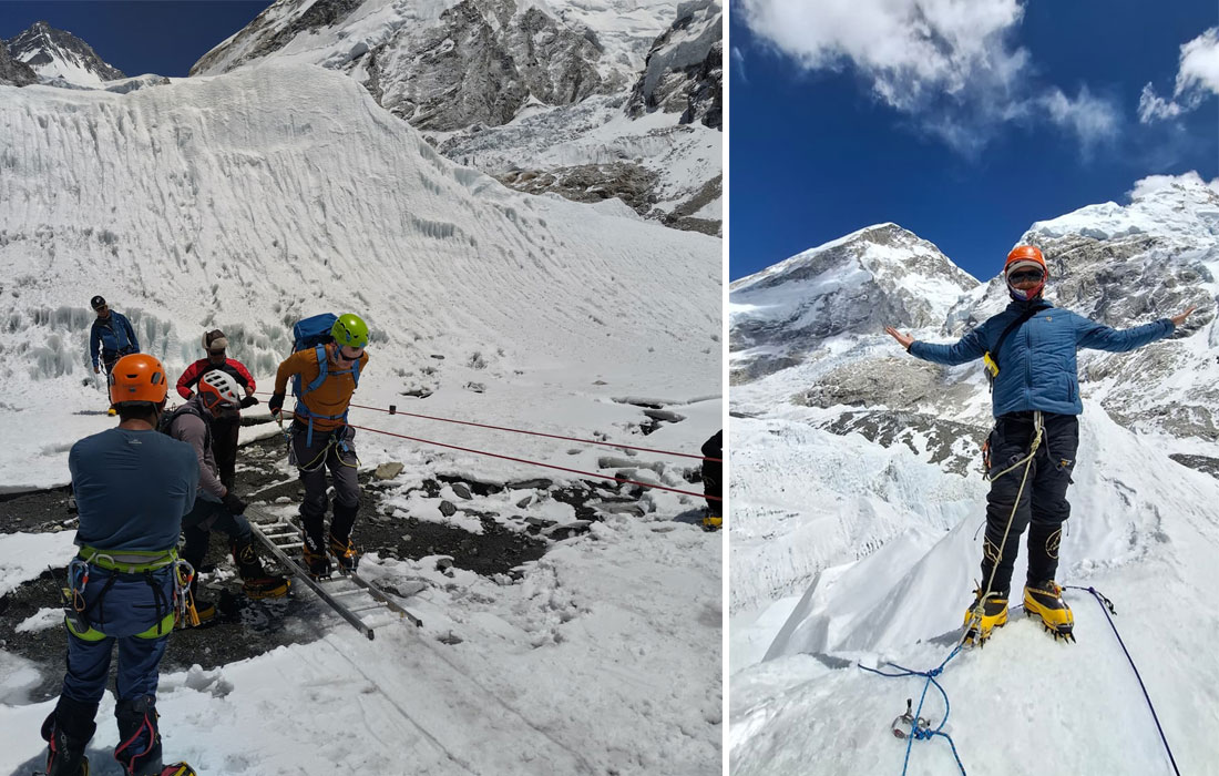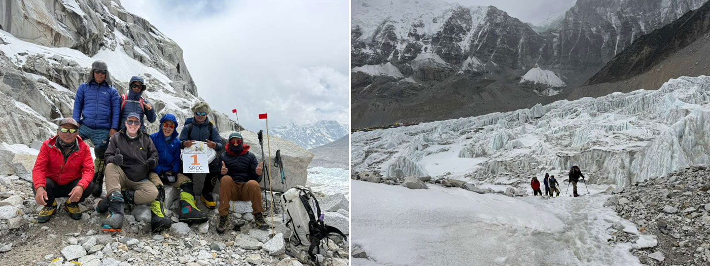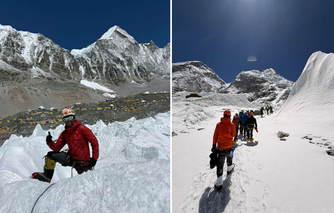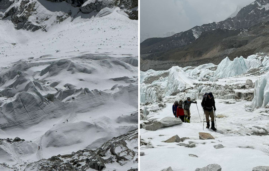Caption : The team climb to check the serac between base camp and camp one. Photo : Vibhu.