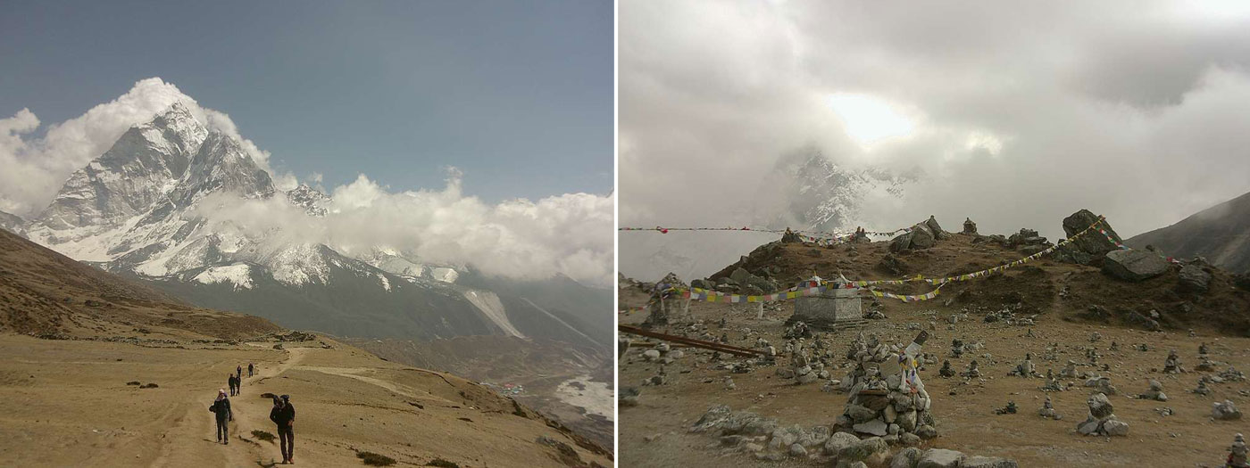 Caption : Far down khumbu valley. Climber memorial at thukla. Photo : Luke.