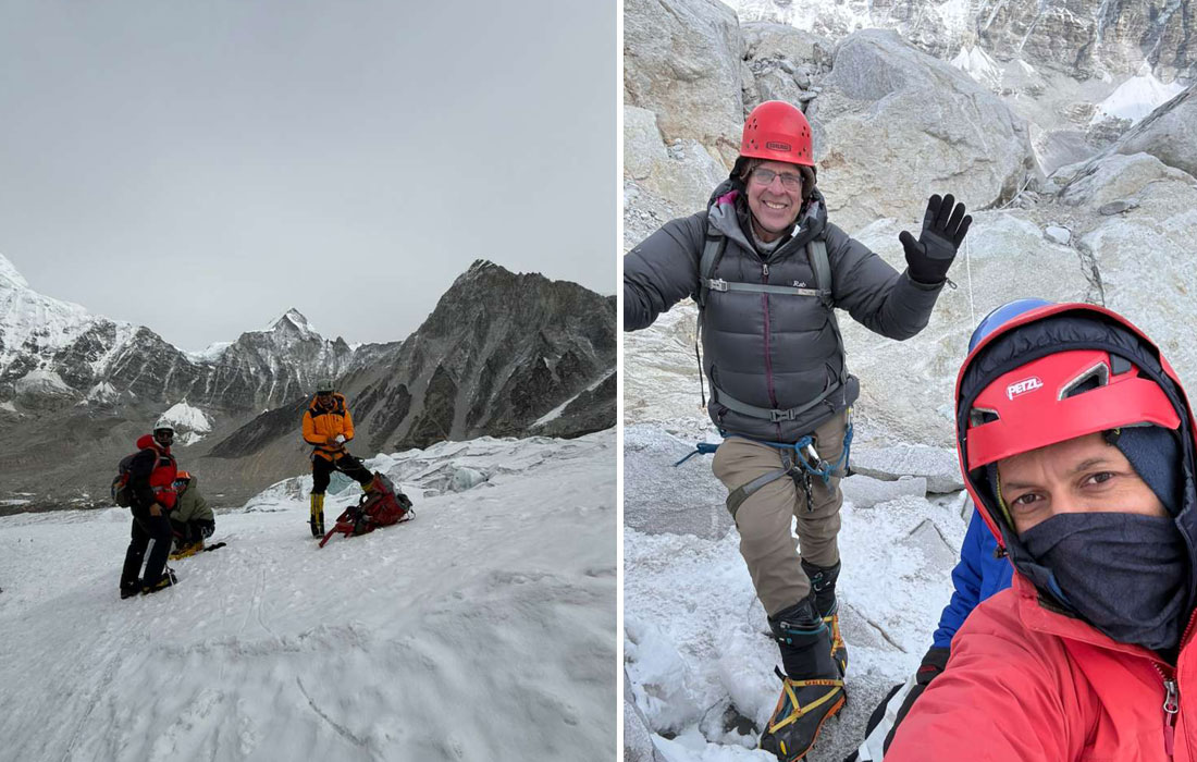 20 April - Today is beautiful and sunny. A great day for fitting all of our technical climbing gear, preparing our harnesses and helmets, ensuring our crampons fit our boots, our ice axe leashes are the correct length. Now we are fully technically prepped and ready to ascend Mount Everest and Mount Lhotse!