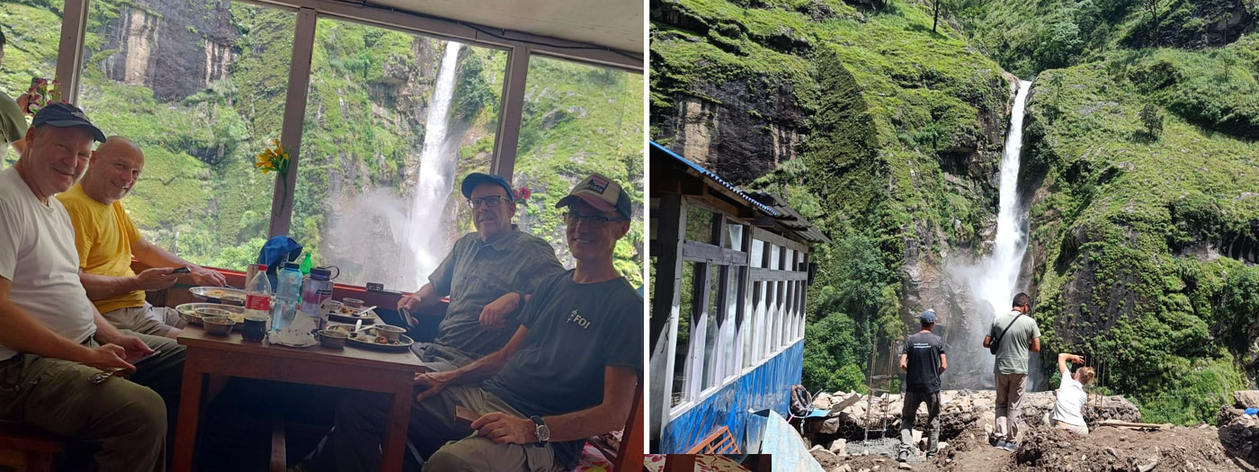 Caption : Delicious breakfast in Besisahar. Enjoying the Boon Falls.