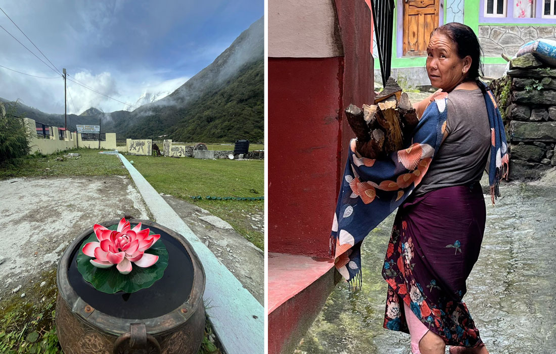 Caption : Trekking through valleys and forests, we arrived in Samagaon, refreshed with coffee and hot showers, and joined in local prayer ceremonies. Photo : Mathias S.