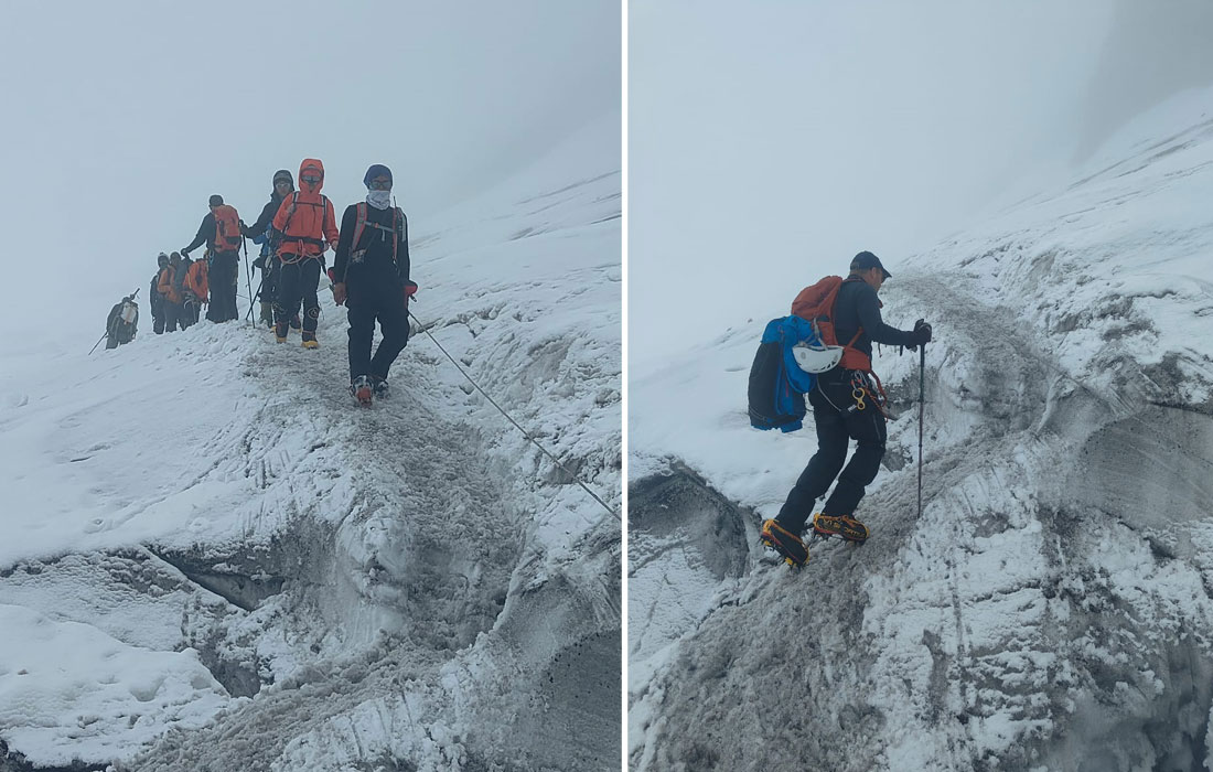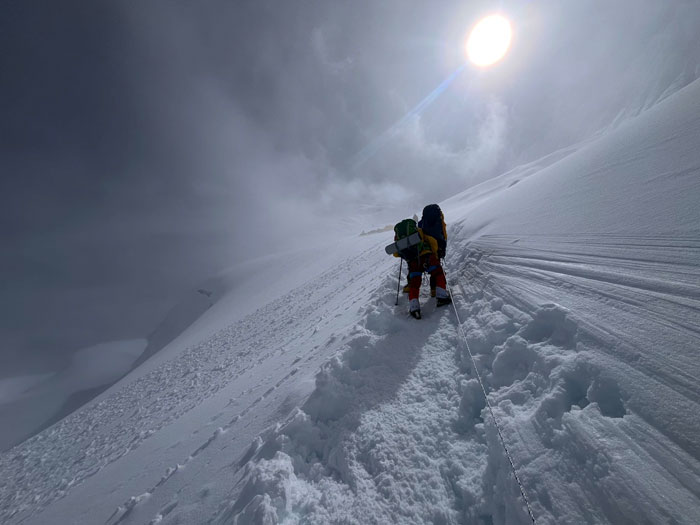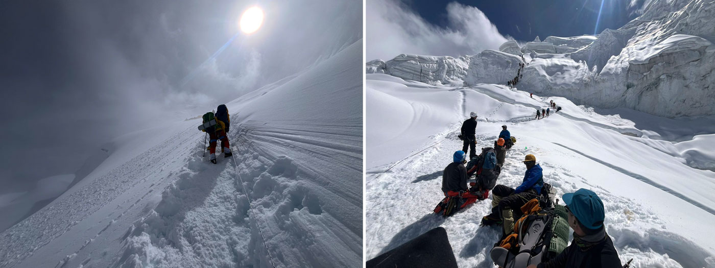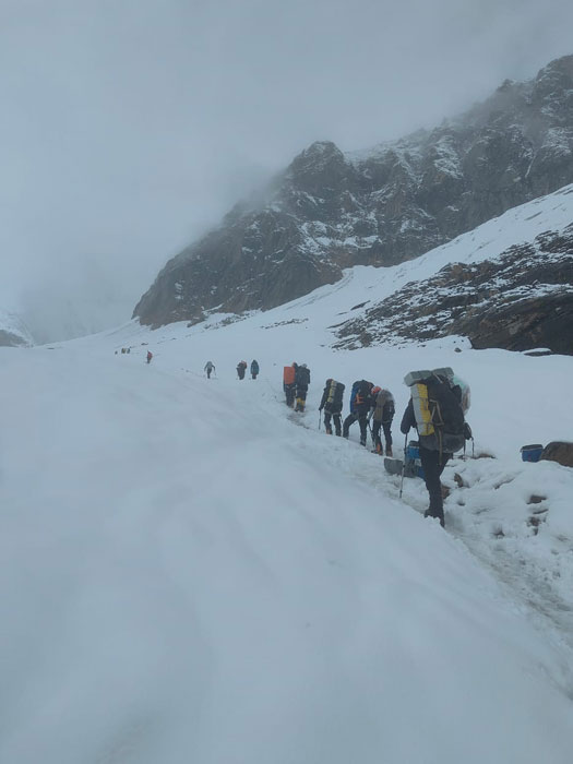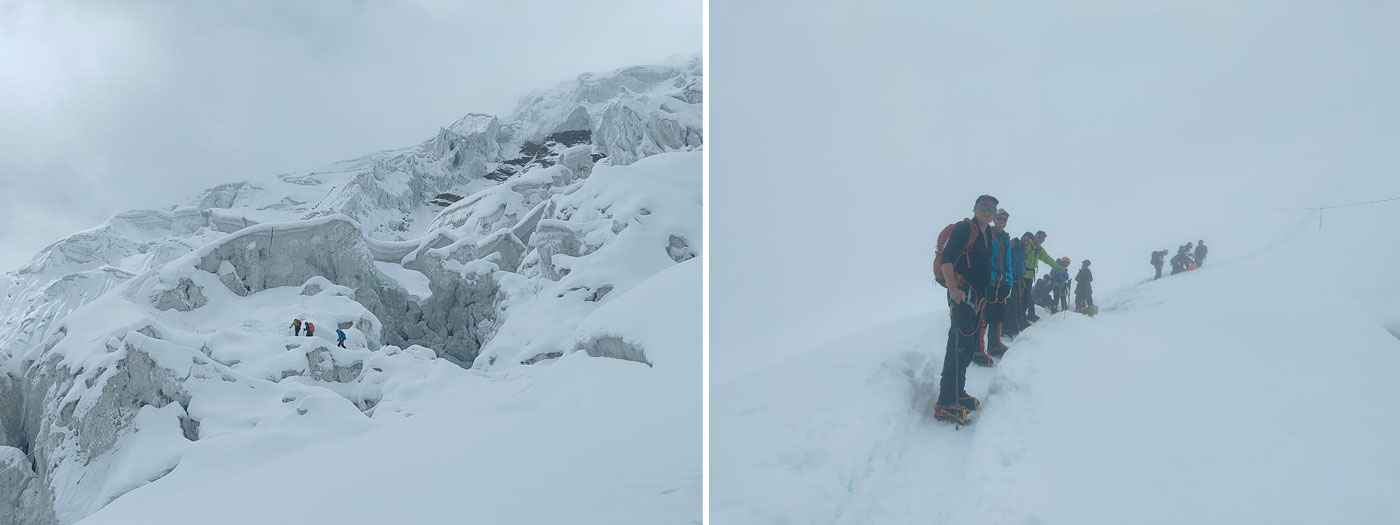 Caption : Climbing from Manaslu Base Camp to Camp 1 today – misty weather and acclimatizing at 5,000m+. Photo By Dorje S.