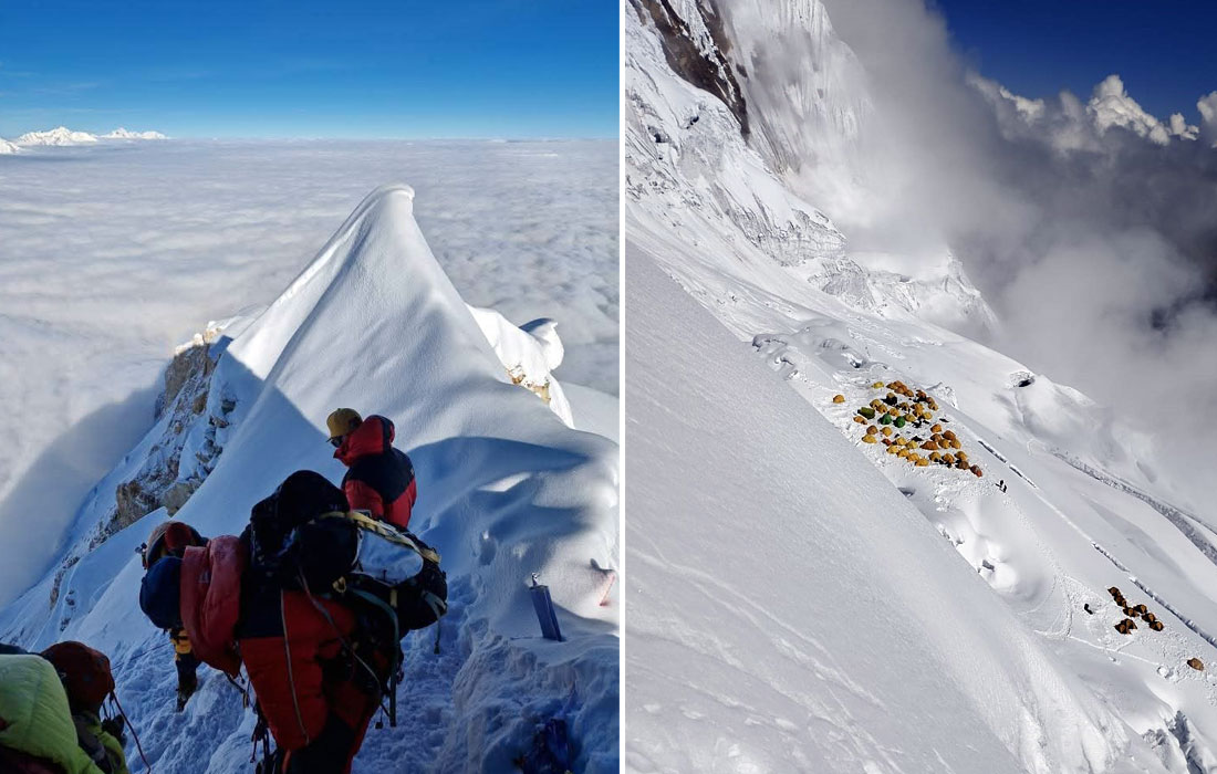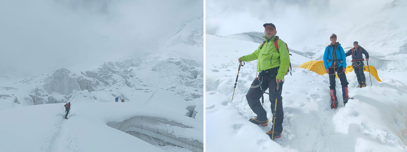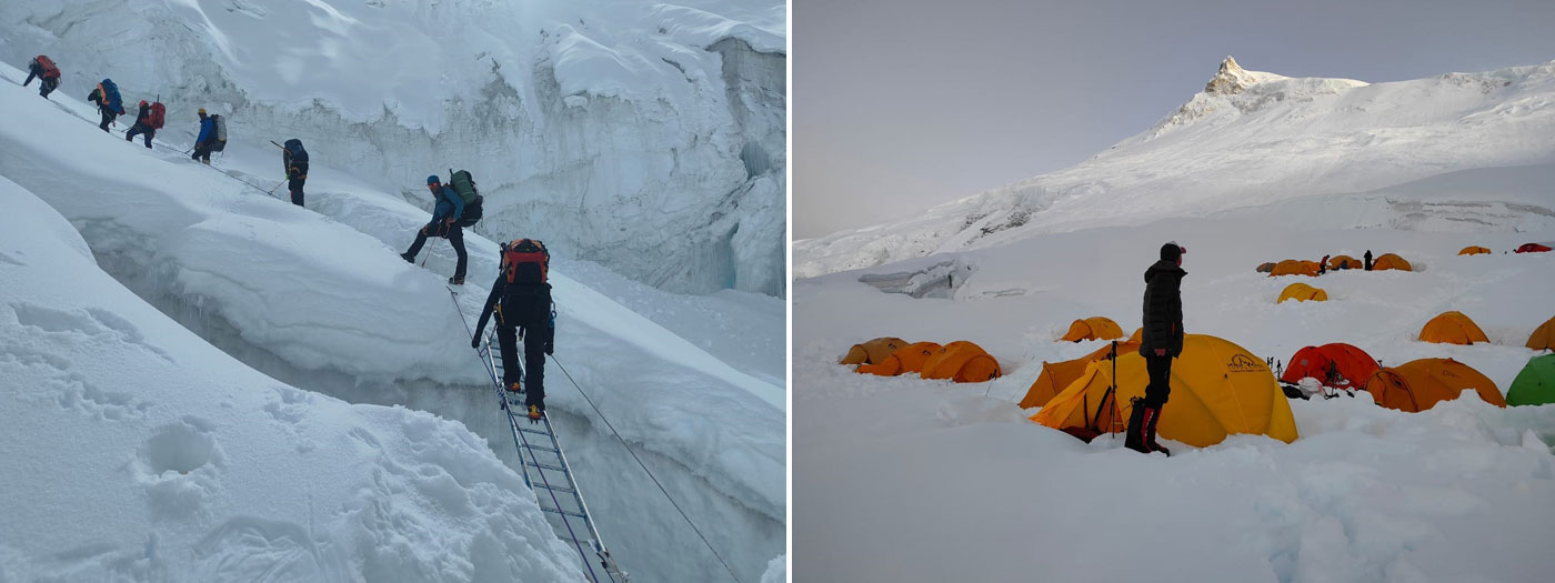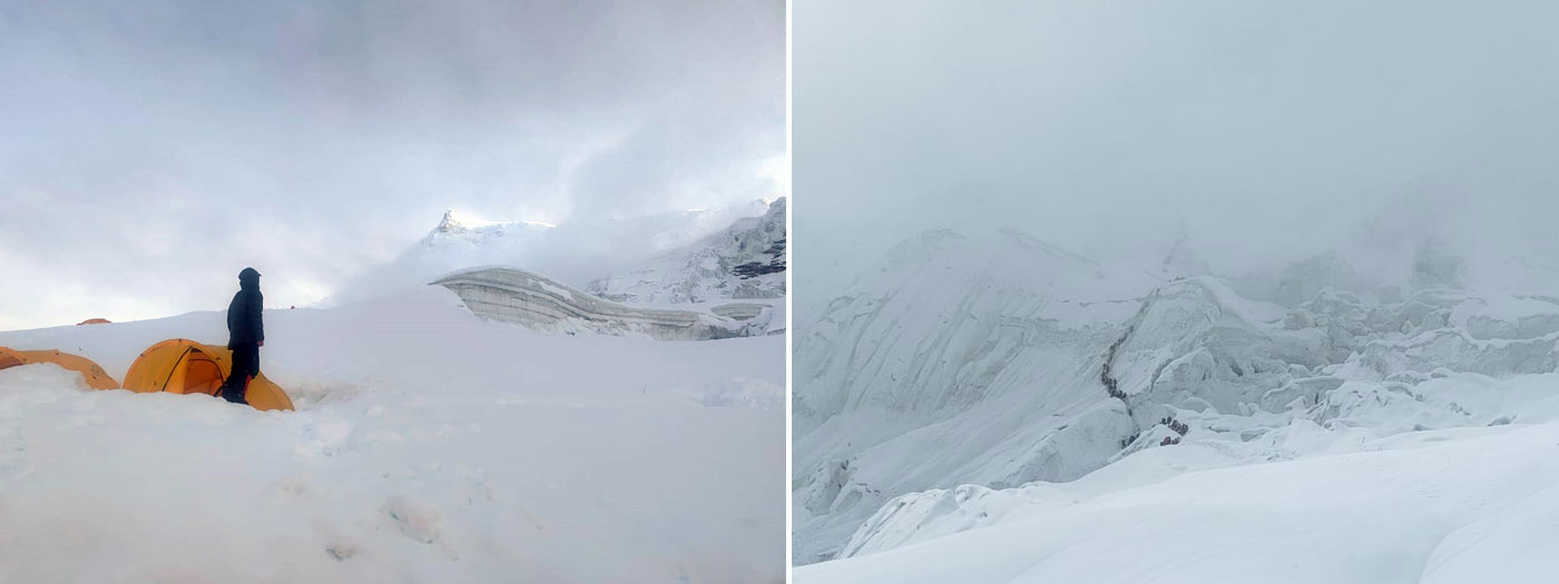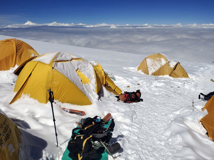 Caption : Above the clouds at Camp 3! Returned to Camp 2 to recover, and acclimatize safely.