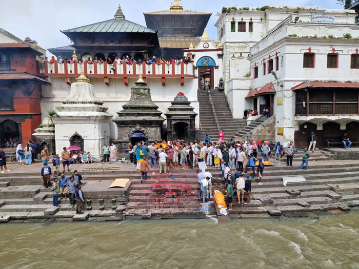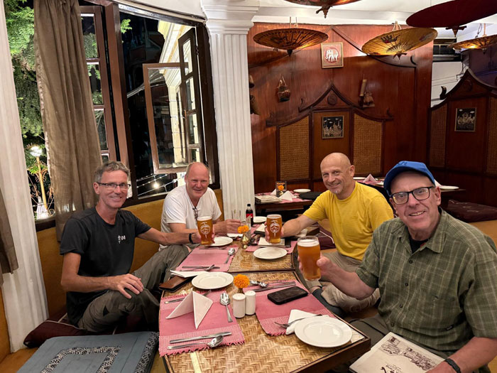 2 Sep - Today we had a nice breakfast in the Harati Hotel. Then took off on a guided tour of Kathmandu’s famous temples: Pashupatinath (where bodies are cremated) and Boudhnath, the famous huge Stupa that people walk around 108 times to forgive a lifetime of sin. Then we ate lunch at Himalayan Java, Nepal’s original and still the most famous and best coffee shop. After lunch we shopped for delicious snack food, changed money, did some more mountain gear shopping, went to a cash machine, and bought our personal medicines. Back in the hotel we packed, rested, and then went out to dinner at Ying Yang, one of Nepal’s finest gourmet restaurants. Then we hit Sam’s bar for some rum and cokes (Cuba Libre), scotch and sodas, and beers. Finally it was back to the hotel to catch up on phone calls, emails, and to finish packing. What a fantastic day!!!