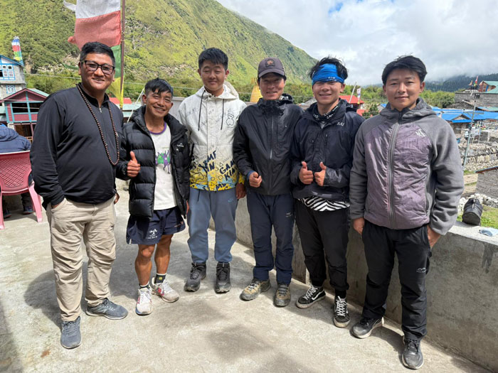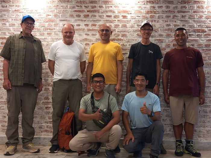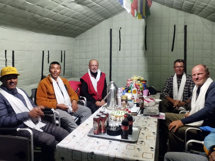 Caption : Team at Basecamp after summit Mt Manaslu. Photo Tenji.