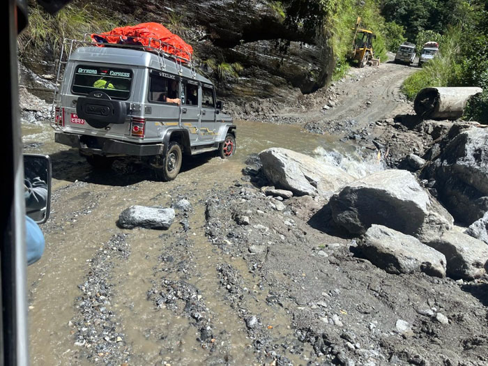 Caption : Our Mahindra Bolero 4wd for the careful drive up the Marsyangdi River.
