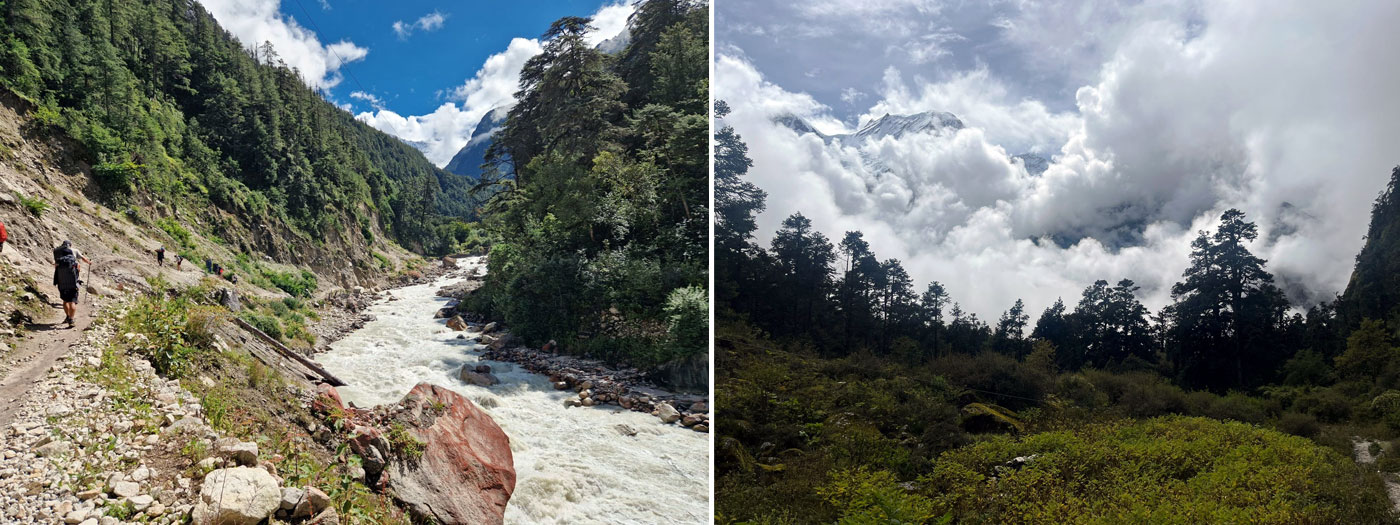 Caption : A peaceful journey along Dudh Khola, surrounded by thick green forests. Photo by Lars E. and Tomas K.