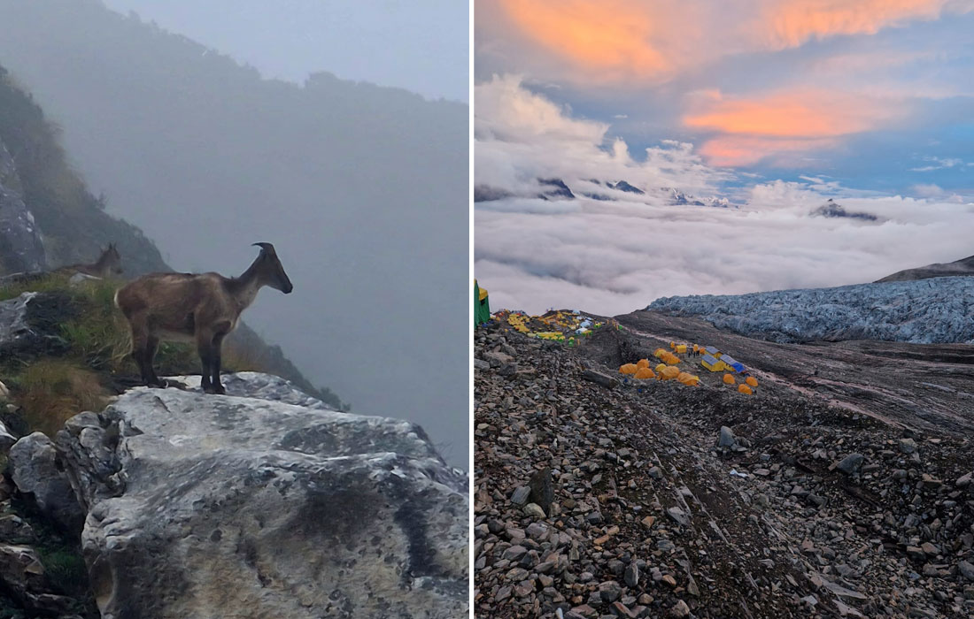 Caption : Wildlife at Manaslu Base Camp – a mountain goat spotted in its natural alpine habitat. Photo : Lars E.