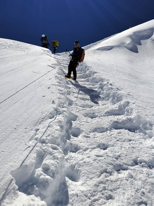 Caption : Climbing between Camp 2 and Camp 3. Photo Tenji.
